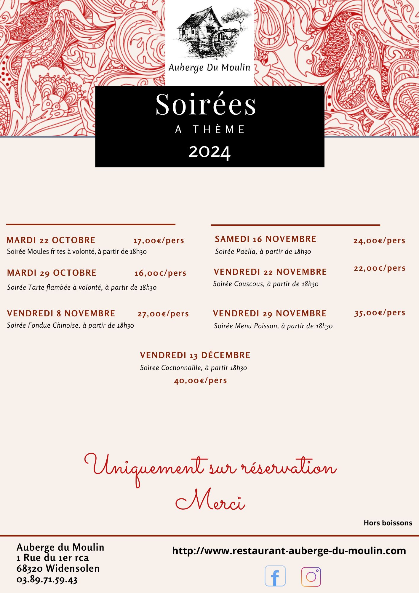 Soirées à thèmes 2024